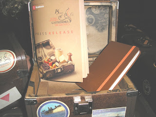 Convidado pela organização do famoso festival de Cultura e Gastronomia Tiradentes, já em sua 15ª edição, que se diga, primou pela exibição, pela escolha do Dalva e Dito do chef Alex Atala, também chef do DOM, 4º restaurante do mundo, e pelo símbolo da maleta de viagem, que verão na foto que tirei, fui informado das atividades gastronômico-culturais que deverão passar por lá nos dez dias de festival.