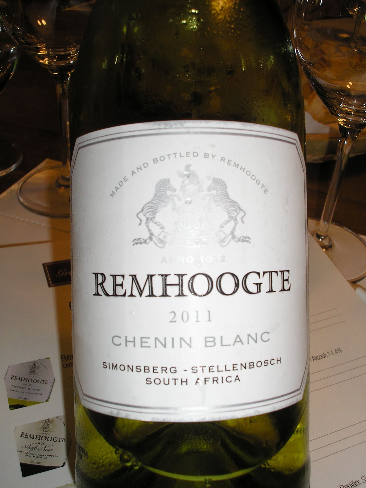 Começando pelo branco, o Remhoogte Chenin Blanc 2011 com 14,1% de álcool. Suas uvas são provenientes de pequena área de 2 ha desta variedade, com apenas 4.000 kg/ha de rendimento em Simonsberg, muito equilibrado, floral, mineral marcado, em boca marca frutas, ótima acidez, e aniz, que já percebera no olfato, em boca se mostra. Passagem de cerca de 15% do vinho por barricas durante 7 meses, torna este vinho elegante, sem afetar seu frescor.