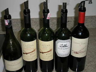 Para mim, todos foram muito bons, mas, e sempre temos nossas preferências, o Angélica Chardonnay 2008, considerado o melhor branco dentro da Argentina, com passagem de todo o vinho por barricas francesas de média tosta, 30% de 1º uso e 70% de 2ºuso, por período de 12 meses, com olfato de baunilha, floral e cítrico, mineral agradável, em boca ótima acidez, confirmando frutas cítricas, talvez toranja ou pomelo, mineral, amanteigado e com bom corpo, perfeitamente equilibrado com o álcool, cerca de 13,5%l, e acidez.Ótimos para entradas verdes, queijos vários, peixes em diversas cocções, e até carnes brancas como o porco, peru, e também algumas caças com a galinha D’Angola.