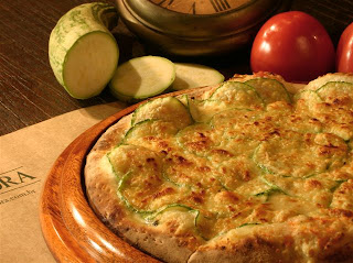 A pizza de Abobrinha é uma destas irresistíveis pedidas, eu experimentei e aconselho com veemência. A abobrinha do nome é colocada crua com parmesão que gratina ao forno e dá crocância à ela.