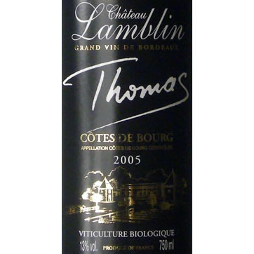 Um deles , meu velho conhecido o Cuvée Thomas 2005 da Lamblim Thomas, um tinto AOC Cote de Bourg, 60% Merlot, 20% Cabernet Sauvignon, 20% Malbec, trazido pela Cave Jado.