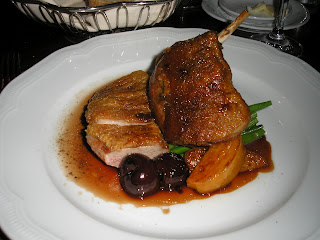 Duo de pato Brome Lake, com peito braseado e perna confitada, fondant de batatas e butternut squash(abóbora), tudo regado ao molho de vinho do Porto.Espetacular.