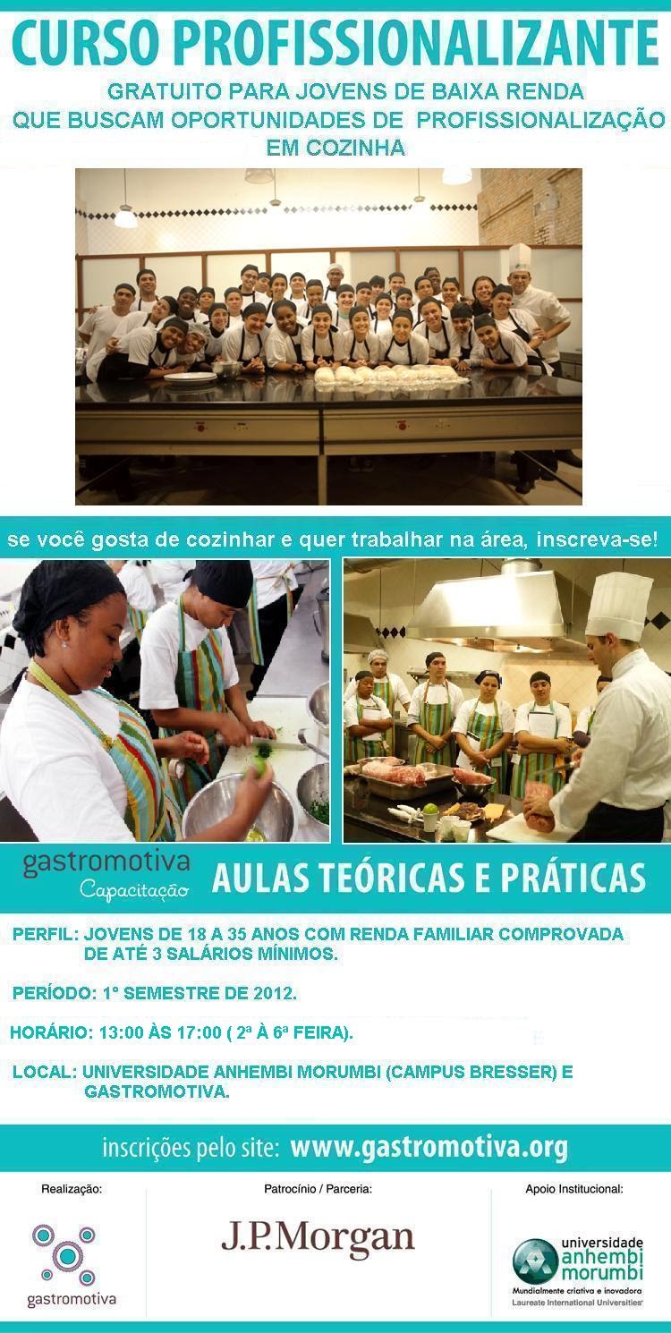 Meu amigo chef David Hertz pede para avisar que as inscrições para o curso profissionalizante na área de cozinha estão abertas, e são gratuitos para jovens de baixa renda.