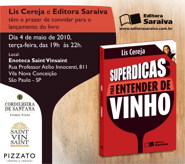 Minha amiga Lis Cereja, programou o lançamento de seu livro para o dia 04/05 na Enoteca Saint Vinsaint, localizada à R. Prof Atílio Innocenti, 811 das 19 as 22 hs.