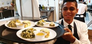Home Filhote coberto com pesto de chicória-crosta de tapioca e risoto de jambú