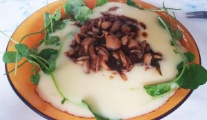 Home Polenta mole, ragú de cogumelos,agrião e o vinho da Casa Geraldo