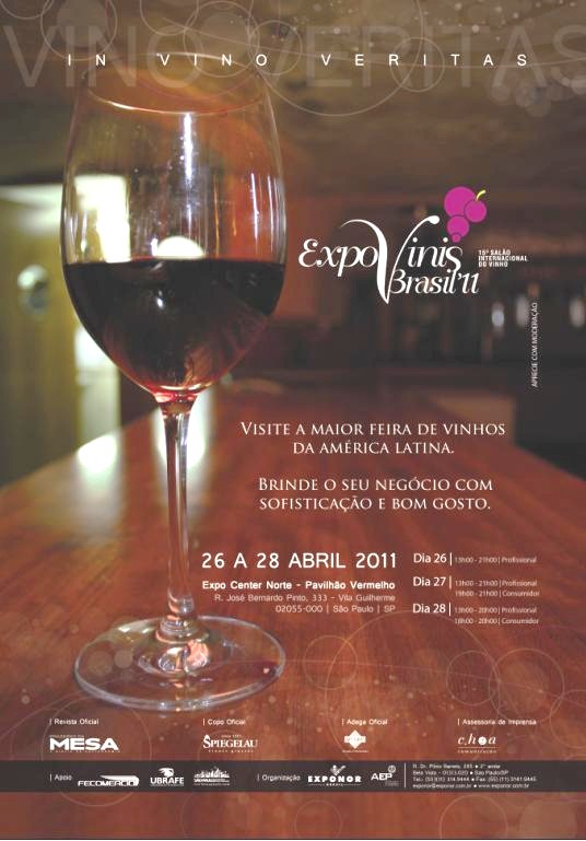 Portanto, anote na agenda! Os dias 26, 27 e 28 de abril serão dedicados a tintos, brancos, rosés e espumantes das mais tradicionais e representativas regiões vitivinícolas do mundo. Profissionais e amantes do vinho já estão convidados para conhecerem as novidades da ‘safra 2011’ do ExpoVinis Brasil, que virá repleta de bons rótulos, novidades e boas notícias.