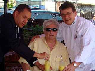 Minha surpresa ao degustar o Caju Amigo, foi a de que estava igualzinho ao que me lembrava, e o Celso aos risos, que também aparece na foto comigo (eu com cara de espanto) e o responsável pelo drink, que nada mais nada menos é o Sargento, velho conhecido dos freqüentadores do Pandoro, e sabedor como ninguém como fazer este belo, brasileiro e refrescante drink.