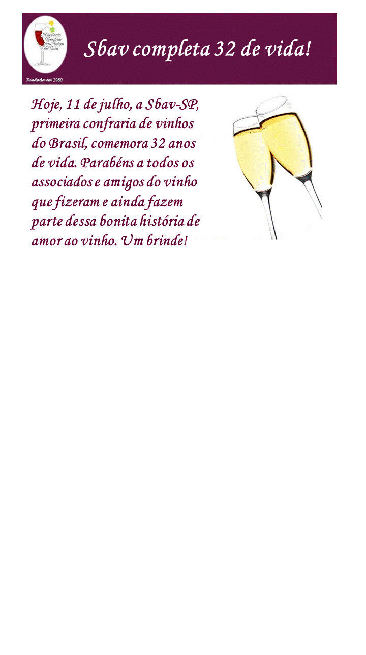 Uma data a ser destaca, a de 11 de Julho de 2012, onde a SBAV, de tantos e tão queridos amigos, completa 32 anos de existência.