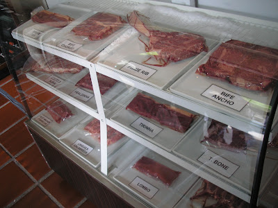 Na entrada da casa, aos moldes das steak houses norte-americanas, uma “vitrine” deixará exposta toda a variedade dos cortes oferecidos pelo novo Dinho’s, e optei por mostrar esta foto, pois os pratos têm que ser vistos ao vivo, para logo a seguir poderem ser degustados.