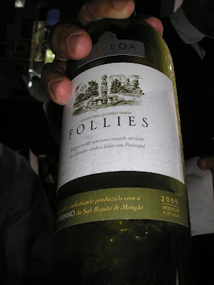 Para não perder a viagem, Costa trouxe os Grande Follies 2009, um Tinto, 98% T.Nacional e o branco, um corte de 66% Chardonnay com pequena passagem por barricas e 34% Maria Gomes, vinho ótimo para o calor, ambos de uma quinta da Bairrada.
