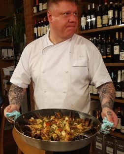 Home Chef Alexandre Vorpagel com prato principal-Arroz de frutos do mar-quase uma paella
